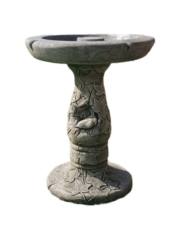 Get a lovely addition to your garden with this Ivy Nest Ornate Stone Bird Bath, available in four authentic finishes. It features a large hollowed water bowl to receive lots of cute birds. The stem is embellished with a stunning intricate ivy decoration and a wren nest on one side.