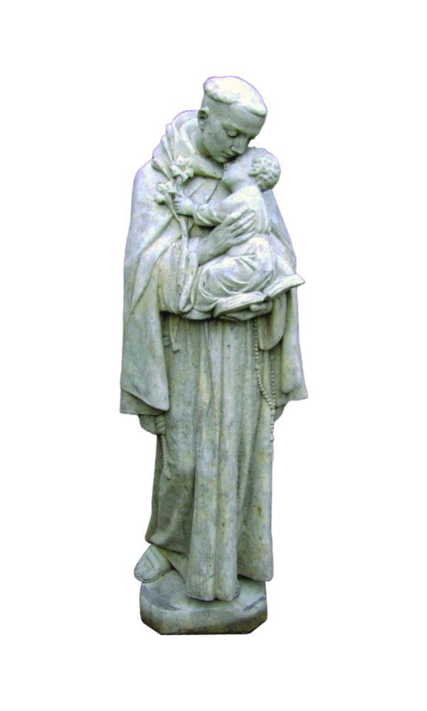 Create a peaceful and evocative atmosphere in your established garden with this Saint Anthony Stone Statue depicting the saint holding the baby Jesus in his arms. This religious sculpture is made in an Aged Cotswold Stone or Burnt Umber finish that will improve its look over time.