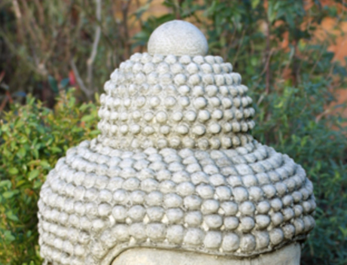 Add a peaceful atmosphere to your garden with this oriental contemporary sculpture depicting a Buddha Head heightened with an Aged Cotswold Stone finish.
